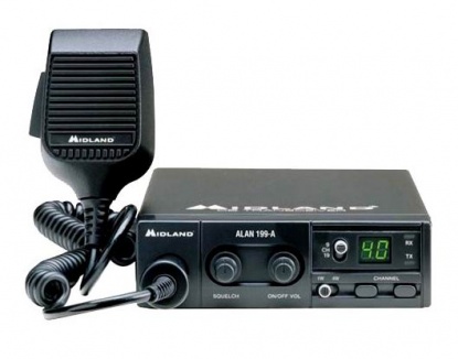 Malé, jednoduché používanie populárnej CB rádio Midland značky. Prístroj má schopnosť pracovať v moduláciou AM / FM a prepínač pre rýchly prístup na kanál 19 a 9 záchranu.